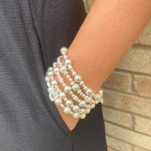 These Chunky bracelets have been designed to give texture to your Mae & Grace stack or to be worn on their own for a bold look. A variety of different styles all handmade from a range of 925 Sterling silver beads and high quality jewellers elastic, they can be worn for any occasion.