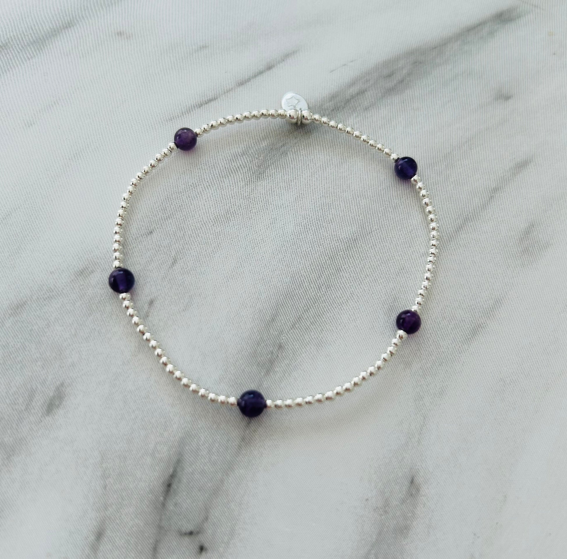 The Amethyst Elegance Bracelet delicately combines 925 sterling silver or gold-filled elements with the powerful energy of amethyst, renowned for its ability to ward off negative energy. This bracelet offers both refined craftsmanship and meaningful protection, promoting calmness, balance, and spiritual clarity in a subtle, elegant design suitable for everyday wear.