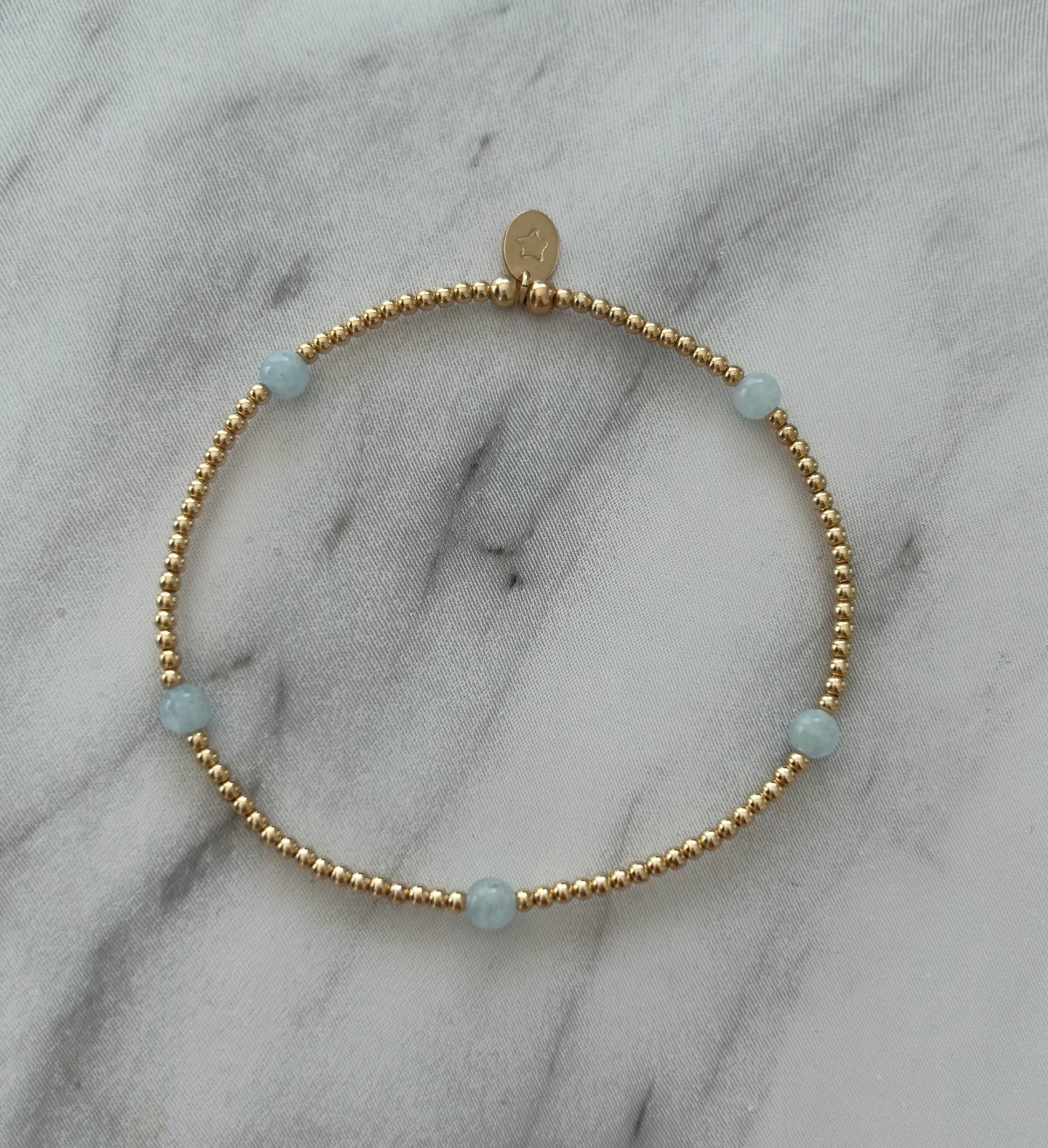 Featuring genuine aquamarine gemstones, this stacking bracelet embodies the stone’s renowned properties of promoting calmness and enhancing clear communication. Expertly crafted in either sterling silver or gold-filled beads, its designed for versatile wear, it layers seamlessly with other pieces or stands out beautifully alone, making it a sophisticated addition to any collection.